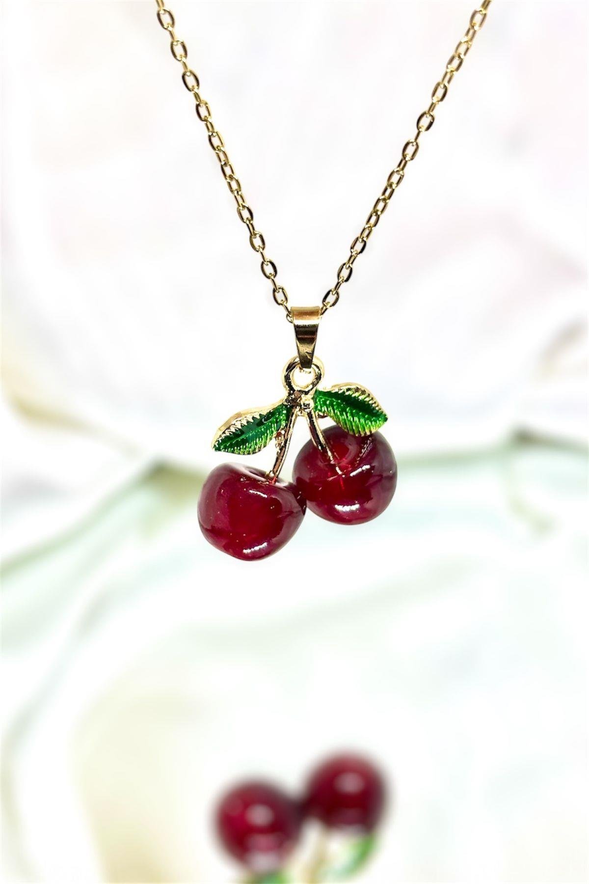 Sevimli çift kiraz figürüyle tasarlanmış Çift Kiraz Figürlü Çelik Kolye, kombinlerinize neşeli ve şık bir dokunuş katar.